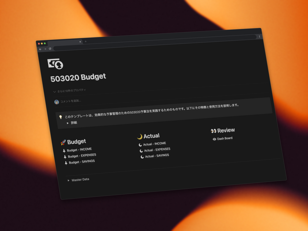 シンプルで効果的な家計管理:Notion 50/30/20予算テンプレート